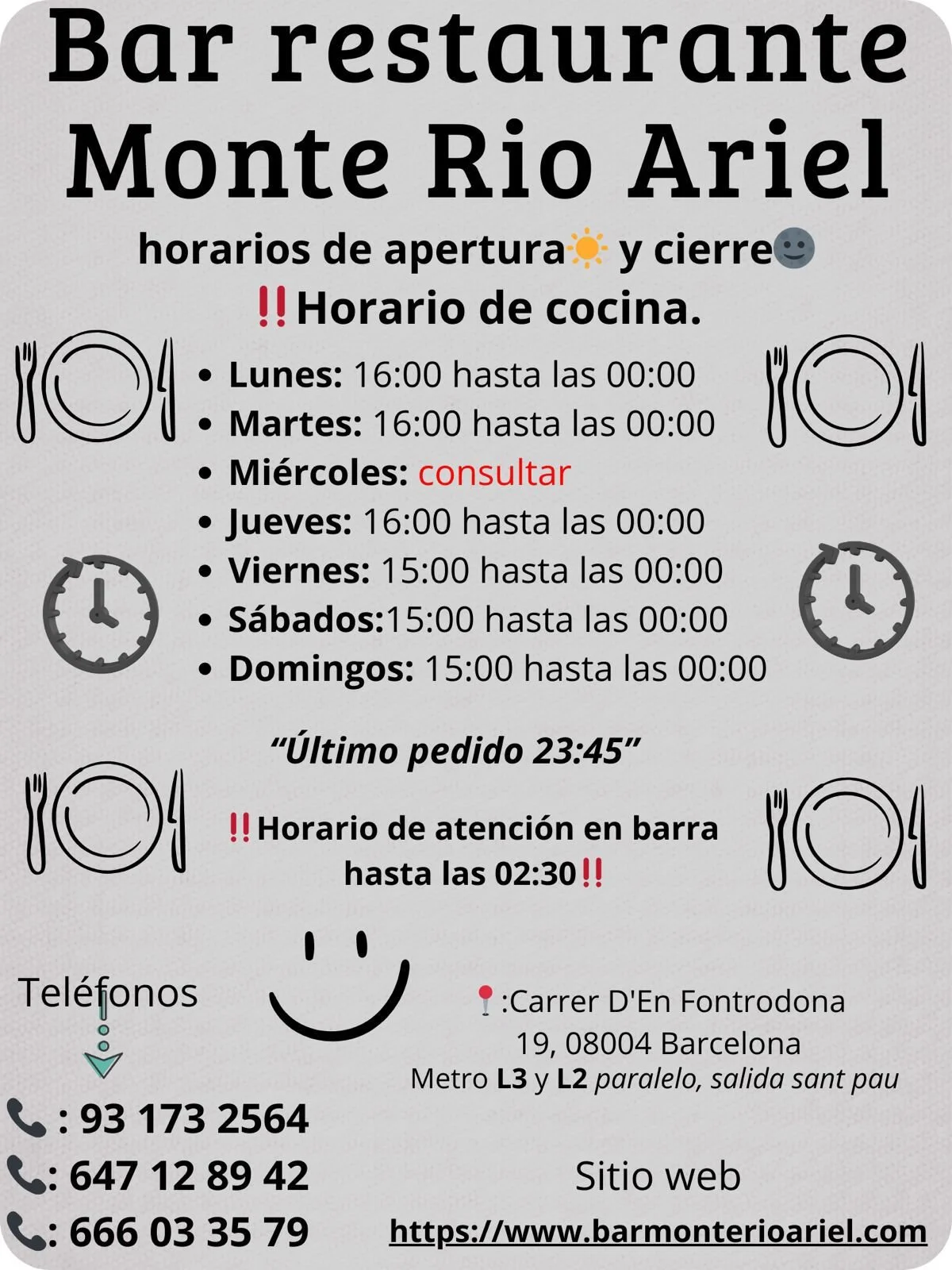 Nuestra historiaMenúFotosReservas Carrer D´En Fontrodona 19, 08004 Barcelona Lunes–jueves4 p. m.–01 a. m. Viernes–domingo3 p. m.–01 a. m.